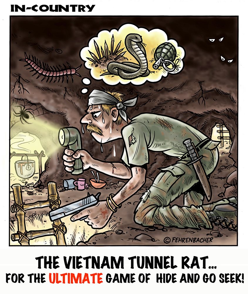 Phil enlisted in the Army in 1965 where you served for years in Vietnam. He became a graphic designer and has worked for the state of Oregon for 26 years. He retired in 2003 and started the Cartoon "In-Country". The cartoons reflect his experiences during his tour of duty in South Vietnam.