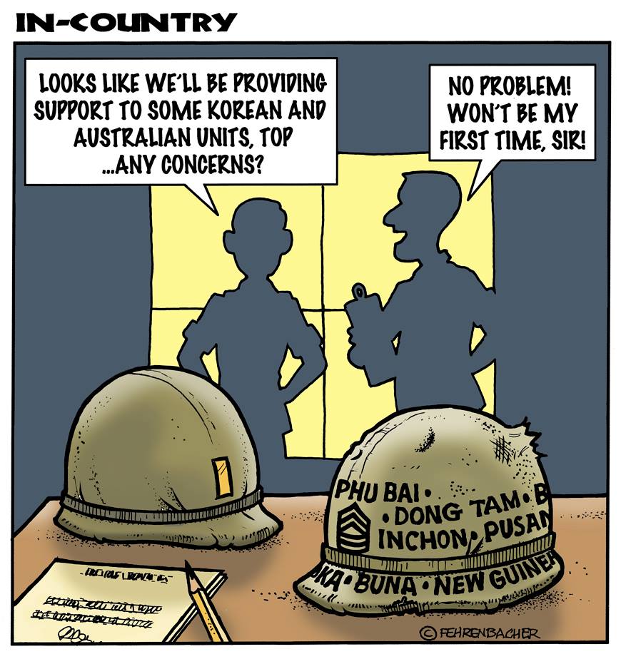 Phil enlisted in the Army in 1965 where you served for years in Vietnam. He became a graphic designer and has worked for the state of Oregon for 26 years. He retired in 2003 and started the Cartoon "In-Country". The cartoons reflect his experiences during his tour of duty in South Vietnam.